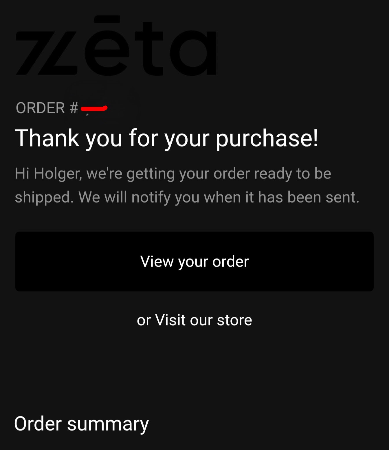 Am deutlichsten merkt man das, wenn man eine Bestellung abschickt. Selbst die Bestellbestätigung sieht überall gleich aus. Es spielt keine Rolle, ob man bei einem alten Klassiker wie Atari oder einem nachhaltigen Label wie Zèta bestellt – das Layout, die Worte, sogar die Buttons sind gleich. Nur Logo und Name wechseln. Das zeigt, wie sehr sich alles angleicht, wenn Shops auf dieselbe Plattform setzen.